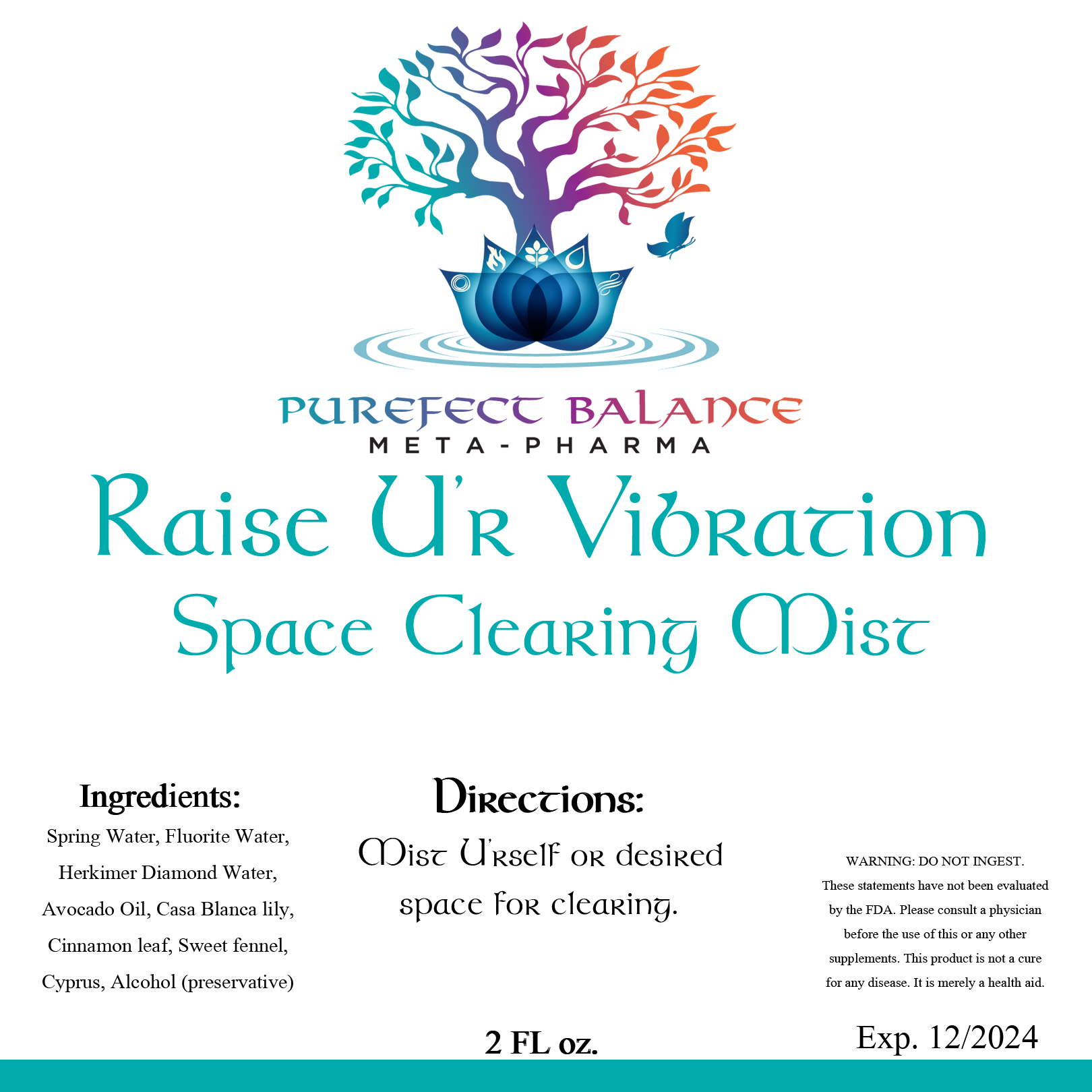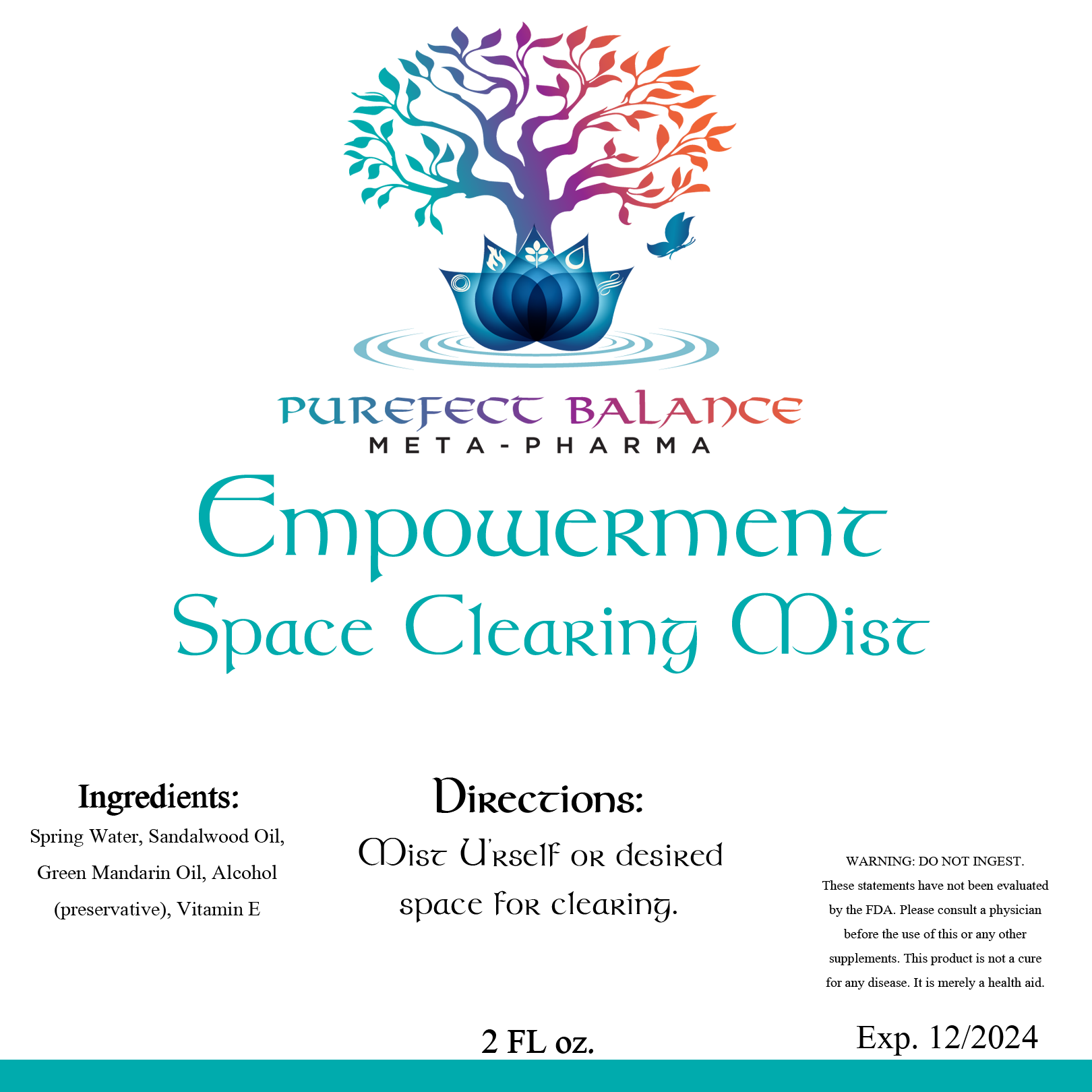 Directions: Mist yourself or desired space for clearing.