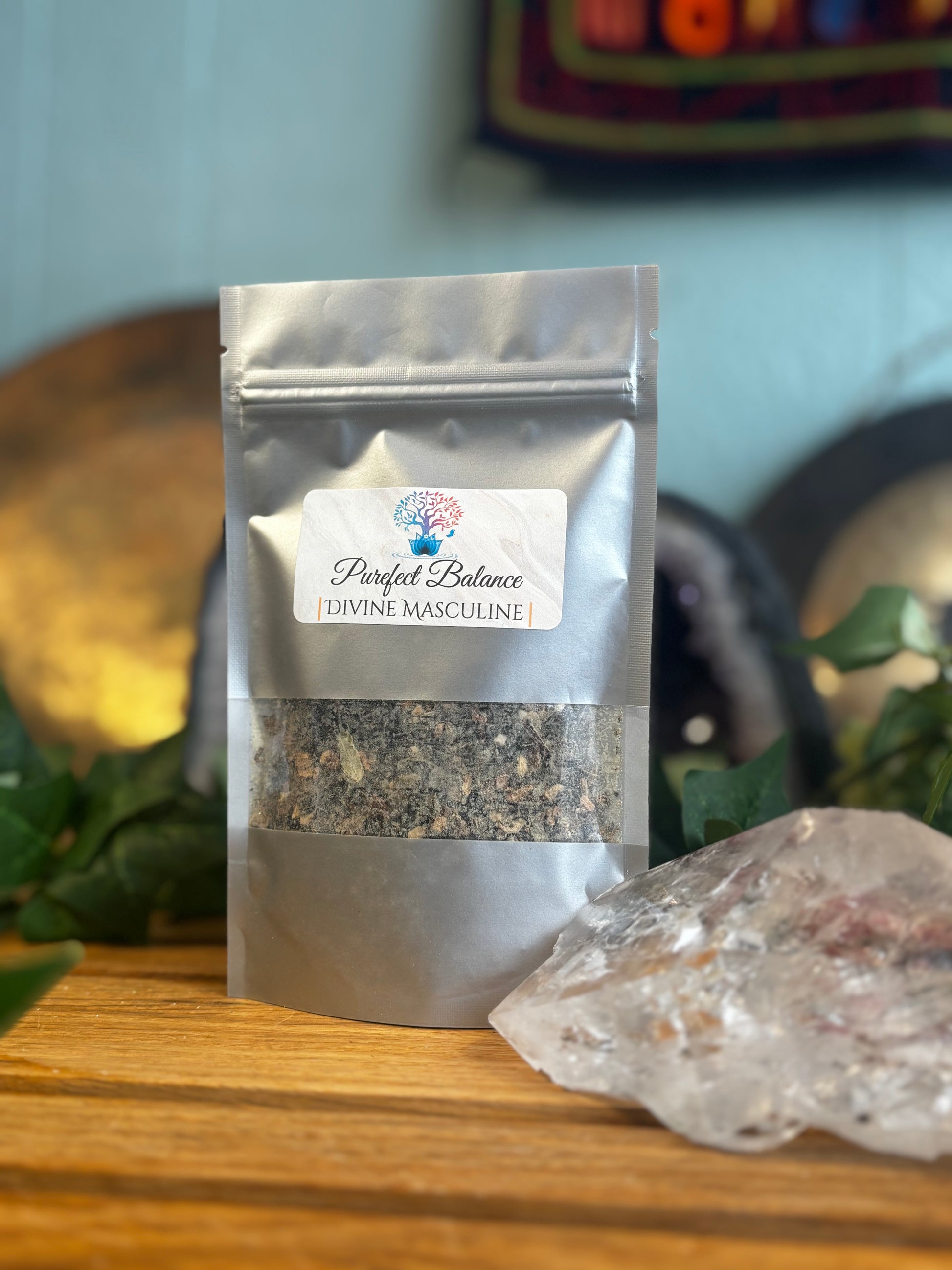 Divine Masculine Tea is a special blend crafted to support and balance the masculine energy within. This unique herbal tea is made from Fennel, Coriander, Nettle Leaf, Oolong, Yerba Mate, Hibiscus and Spearmint. With a bold flavor and pleasant aroma, this tea helps to bring out your inner strength and power. Enjoy a cup of Divine Masculine Tea to promote vitality, physical well-being, and emotional balance.